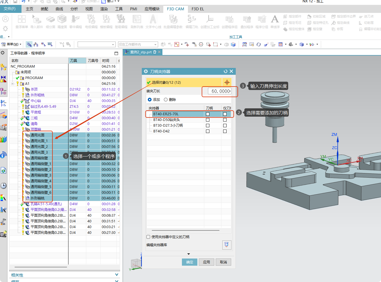 可以一次性将某个刀柄应用到多个刀具或操作中,适合多工序、多刀具的复杂零件